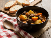 Говядина отварная, капуста, свёкла и морковь маринованные, зелень, картофель пай